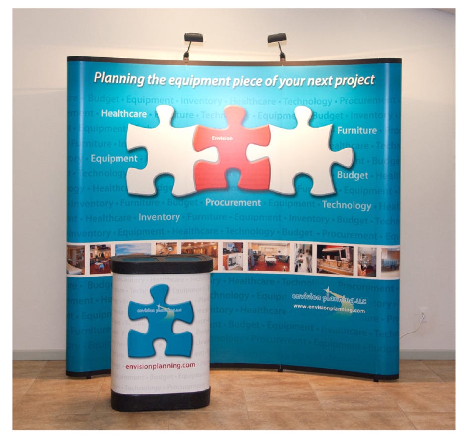 Trade Shows are an opportunity to brand your products within a small environment. Design plays an important role in positioning your services in the market. Anvil Graphics offers exhibit products from two of the largest vendors in the country, allowing us to offer the highest quality banner stands, pop-up exhibits, portable displays, light boxes and accessories. Below are just a few samples of the trade show and event items purchased by clients. Great for seminars.